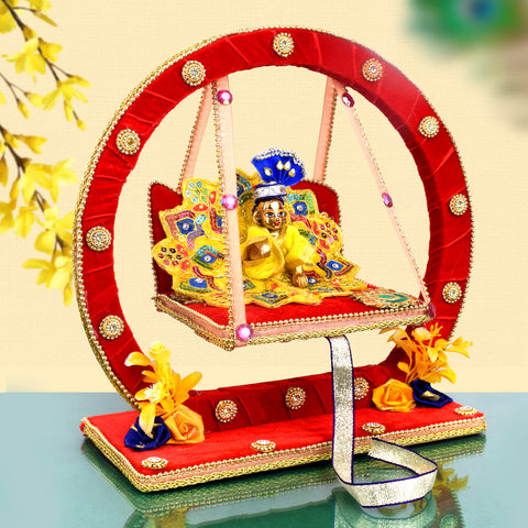 Celebrate Nandotsav with beautifully designed Jhulas for Kanha Ji. Choose from wooden, metal, and meenakari swings – perfect for Laddu Gopal during Janmashtami puja and decoration.