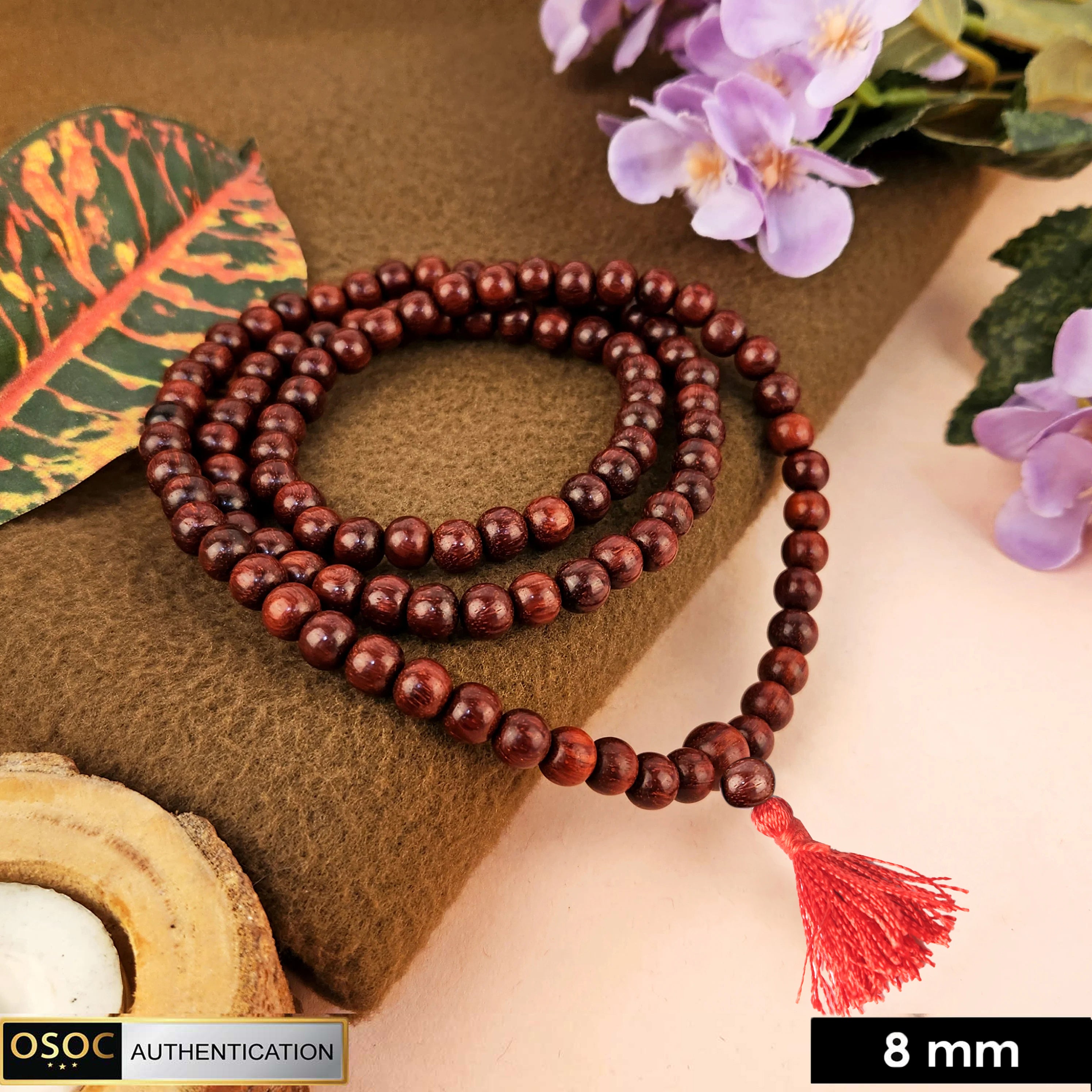 Certified 8mm 100% Original Authentic Pure Red Sandalwood Jap Mala (Thread)