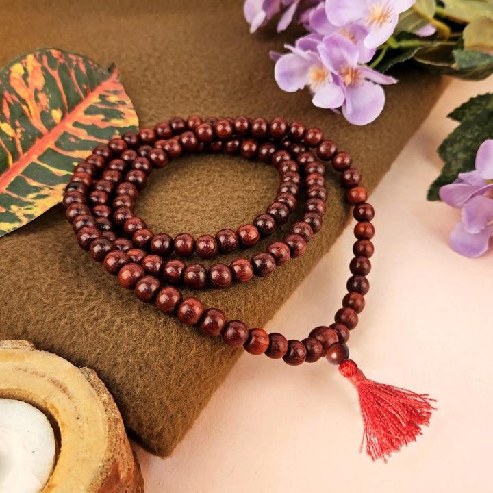 Red Sandalwood Jap Mala | Chandan Mala for Meditation | Natural Red Sandalwood Rosary | Handmade Chandan Beads Mala | Sandalwood Mala for Prayer | Mala for Hanuman Mantra |