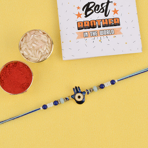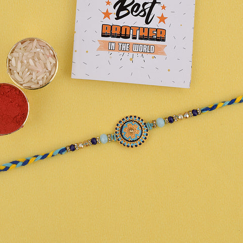 Beaded Rakhi: Adorned with intricate beads, our beaded rakhi collection exudes charm and elegance. Celebrate the joyous bond with your siblings as you tie these vibrant and delightful rakhis on their wrists.